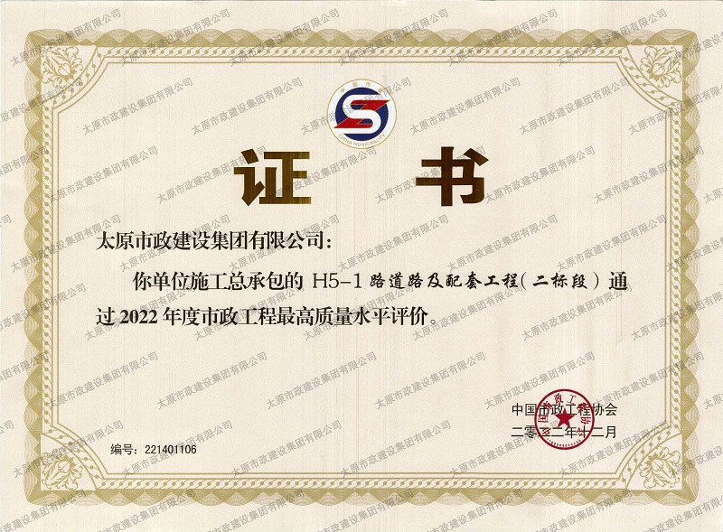 2022年度市政工程最高質(zhì)量水平評價(jià)_H5-1路道路及配套工程(二標(biāo)段)